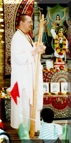 Prasadam La comida trascendental es parte importante de la comunidad. Comida sin karma, sin sangre derramada. La comida es ofrecida al Señor, todas las cosas deben hacerse así, como una ofrenda a El. Ingredientes puros, cocina limpia, y mente devocional. Así se prepara la comida que se ofrece a Krishna, y los devotos comparten con placer lo que se ofreció al Señor. El Truly Ashram siempre tiene buena comida vegetariana e integral, y una gran parte proviene de sus propios cultivos puros, sin química alguna. Además hay un pequeño restaurante para los turistas de Chacra y mar. Mahasudarshana Yantra del Truly de la misericordia Toda comida debe ser ofrecida al Señor y así se vuelve su misericordia, o prasadam. El Vishnu yantra llamado Mahasudharshana Yantra nos protege y está en el Truly donde se distribuye la comida transcendental. La Plazoleta Sri Chaitanya Mahaprabhú, el salvador de la era actual, el avatar del canto congregacional del los santos nombres de Krishna, sabía muy bien que sin humildad, este movimiento no tendría chance de sobrevivir. Demasiada oposición se da siempre, y ésta siempre quiere despedazarlo todo. Mas la humildad Vaishnava está recordada aquí en la plazoleta de la humildad, un monumento sencillo, con la sagrada inscripción del tercer Sloka del Siksastakam., que reza así: Trinad api sunicena " Uno debe cantar el santo nombre del Señor en un estado mental humilde, considerándose más bajo que la hojarasca en la calle; uno debe ser más tolerante que un árbol, debe estar exento de todo sentido de vanidad, y estar dispuesto a ofrecer pleno respeto a los demás. En semejante estado mental, uno puede cantar el santo nombre del Señor constantemente." Si vivimos con este fín, y lo mantenemos siempre en el centro, la Ilusión no tendrá chance de alejarnos de esta causa unida. Imli Tala Para iniciar nuestros festivales, en el Hare Krishna Truly Ashram construímos una humilde edificación con cocina anexa. Imli Tala es un sitio en Vrindavan donde se encuentra un famoso árbol de deseos. Sri Chaitanya Mahaprabhu se manifestó originalmente en este lugar y cuando visitó Vrindavan fue todos los días allí. En la ribera del Yamuna, que también está presente en el océano Pacífico, estamos recordando la predicción de Sri Chaitanya, de que el santo nombre será cantado en todos los pueblos y aldeas de la tierra. |