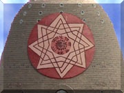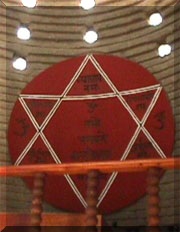 En frente del Truly del Maestro, entre las dos dandas, se ve este símbolo típico de los Vaisnavas. En la India estas marcas identifican a los seguidores de esta escuela. Este símbolo acompañó tradicionalmente los kirtans de los devotos de Sri Chaitanya Mahaprabhu. El Tilak en el centro representa la impresión del pie de Loto de Krishna, y la hoja terminada en punta que se encuentra en su base, representa a una hoja sagrada de Tulasi, ofrecida a los pies del Señor. Los devotos marcan diariamente su cuerpo en doce partes con este tilak, indicando que este cuerpo pertenece al Señor. Además así uno invoca Su protección. El Gayatri Mantra es muy importante. Este fue recibido en el corazón de Brahma, el primer ser creado, de parte de su creador. De allí fue descendiendo a través de la sucesión discipular de maestros espirituales. Este Mantra proviene de la flauta de Krishna, y nos invita a irnos al mundo del verdadero amor. Todas las escrituras Védicas emanan de El. El Gayatri Yantra se encuentra en la parte exterior del Truly del Maestro Espiritual para proteger a los devotos. Gayatri Devi es la expansión femenina del Señor, que viene preocupada por los hijos perdidos. Para recibir el Gayatri Mantra uno debe ser un brahmana comprometido con la verdad, y un genuino servidor de la humanidad. Recibir este Mantra se considera un segundo nacimiento, más esta vez a la conciencia espiritual. El nacimiento de los padres es sólo el nacimiento del cuerpo. A través del segundo nacimiento se puede procurar una conexión con Dios. El Gita Yantra se encuentra en la parte interior del Truly del Maestro Espiritual. Este yantra representa al Bhagavat Gita, el cual es estudiado por los devotos todos los días. Sri Krishna habló a su discípulo Arjuna y así bendijo al mundo entero. Krishna mismo confirma en este libro que quien predique Su mensaje a las almas sufridas, será Su más querido devoto, y podrá llegar a El personalmente. Sin comprender el Bhagavat Gita en forma correcta, no se puede comprender a los devotos de Krishna.